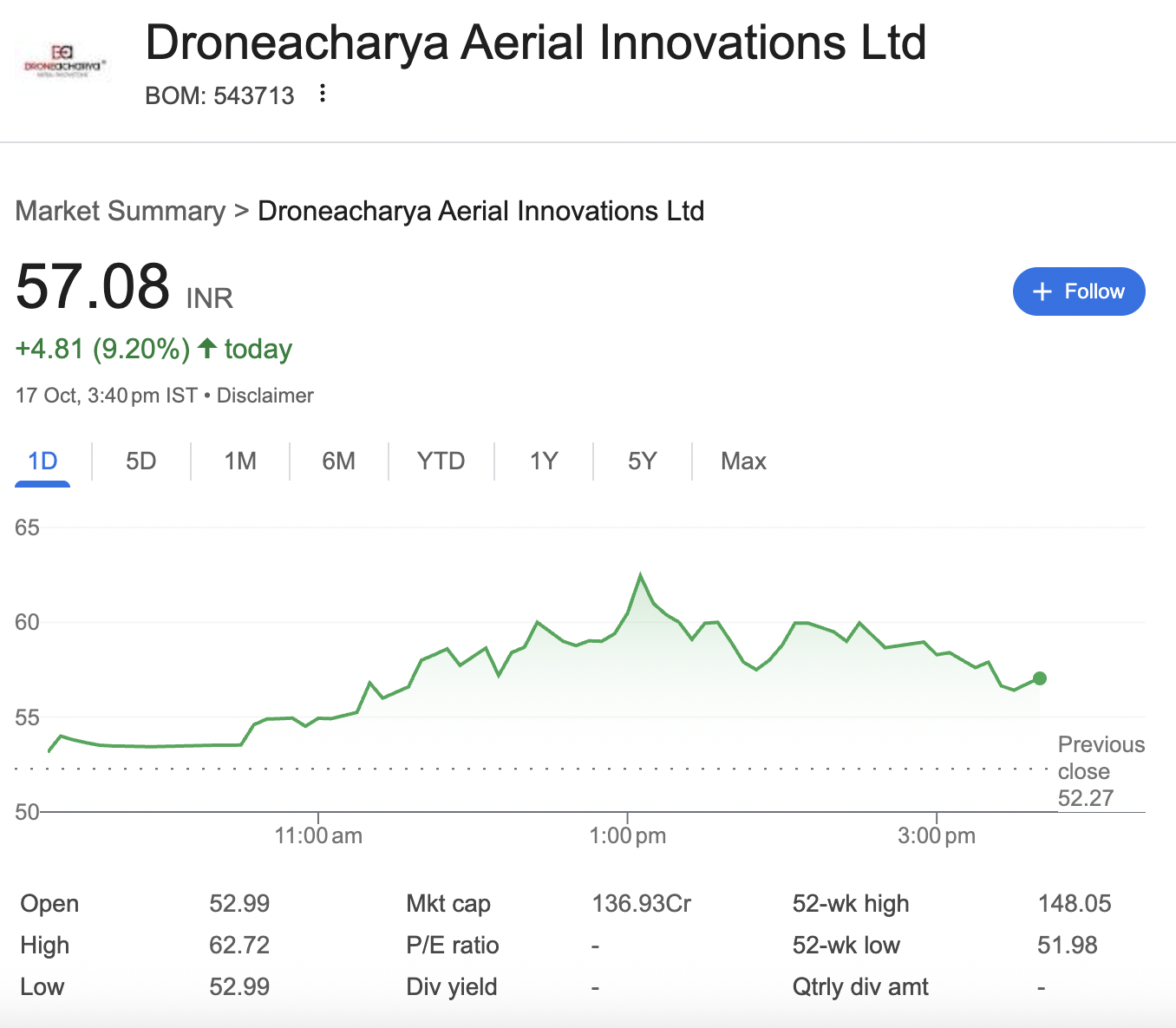 Picture this: A swarm of 180 stealthy First-Person View (FPV) drones, zipping through high-altitude skirmishes, beaming real-time intel to Indian Army commanders – all built by a Pune-based startup that’s barely eight years old. Sounds like a scene from a Tom Clancy thriller, right? But it’s real, and it’s happening. DroneAcharya Aerial Innovations Ltd, India’s pioneering listed drone player, just clinched a ₹1.09 crore deal with the Ministry of Defence to supply these tactical beasts. Shares rocketed 15% on the news, hitting ₹60.3 intraday, as investors bet big on a defence tech renaissance.