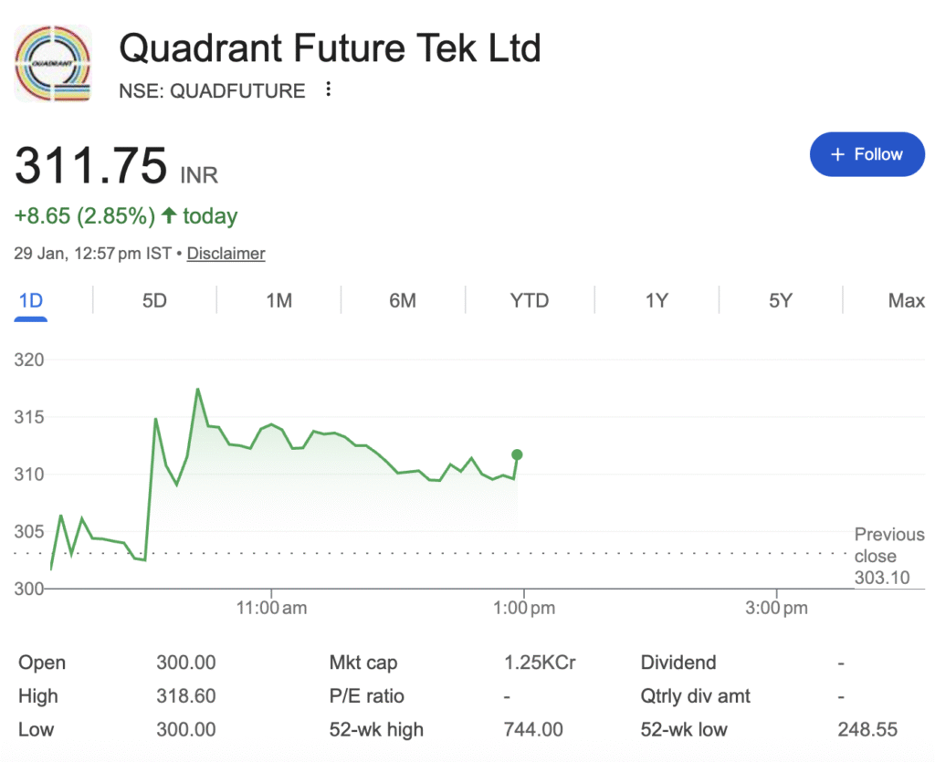 For now, the market has voted with clear optimism, marking a red-letter day for Quadrant Future Tek as it gears up to power the safety of Indian Railways with its technology.