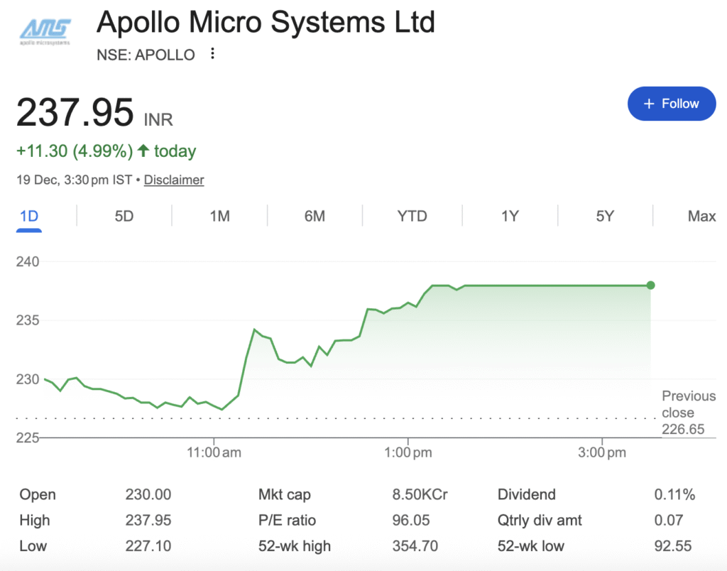 - Clear Conclusion: Apollo Micro Systems is a fundamentally strong company operating in a stellar structural growth sector. It possesses a wide moat and a visible multi-year growth runway. However, this quality and potential are fully reflected, even overstretched, in its current valuation. The stock is a high-conviction, high-risk bet on flawless execution.